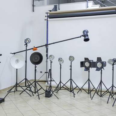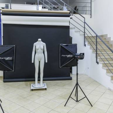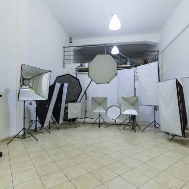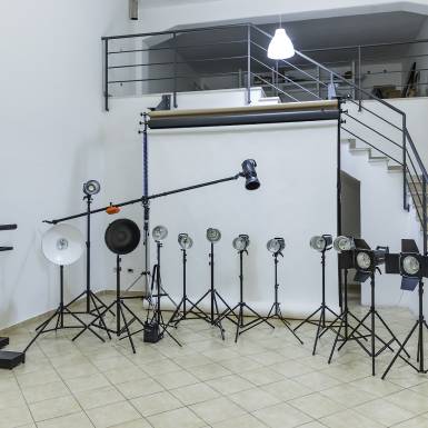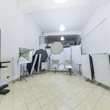 Abbiamo allestito uno spazio da 90 metri quadri con le attrezzature più varie proprio per venire in contro a tutte le esigenze: manichinitavoli da still-lifeluci continue e flash Elinchromdiffusori di tutti i tipi e le dimensioni, giraffa super salon. La sala è provvista di camerinobagnoriscaldamentidivani angolo trucco.